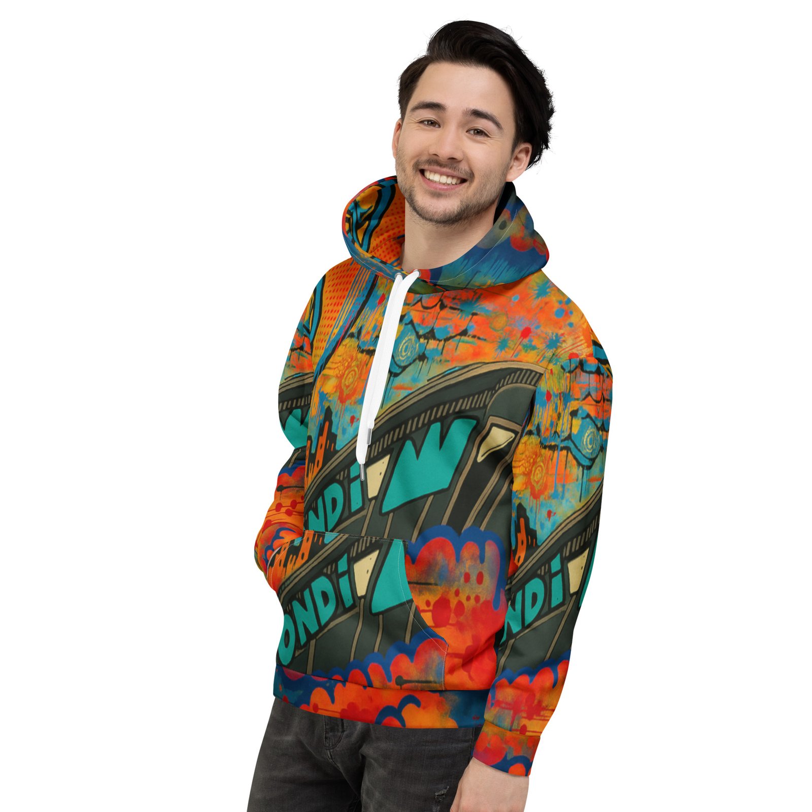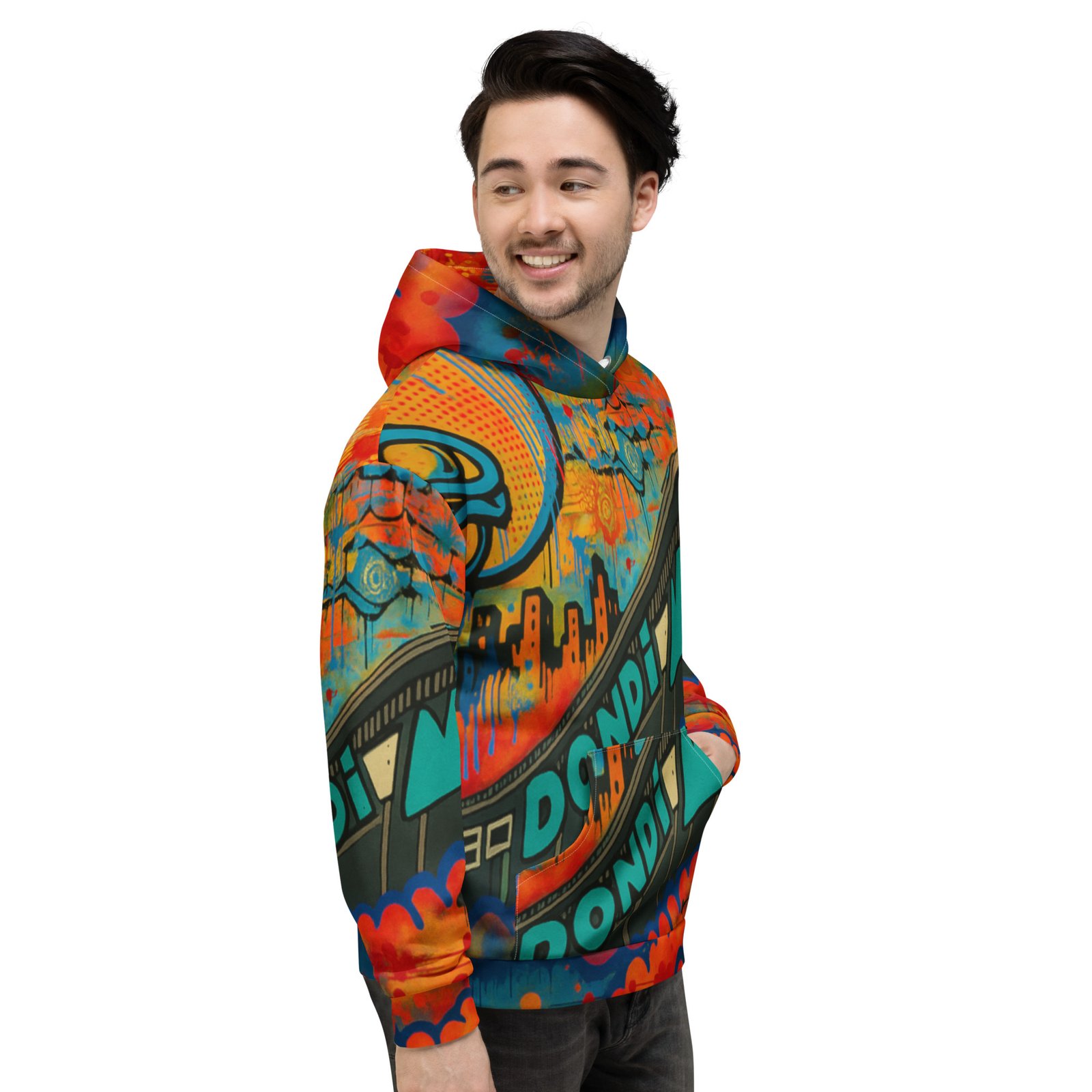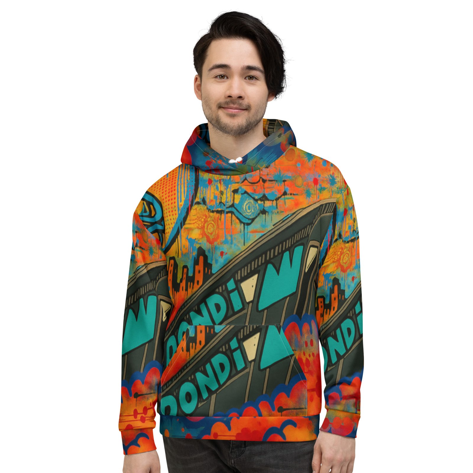 This comfy unisex hoodie has a soft outside with a vibrant print and an even softer brushed fleece inside. The hoodie has a relaxed fit, and it’s perfect for wrapping yourself into on a chilly evening.